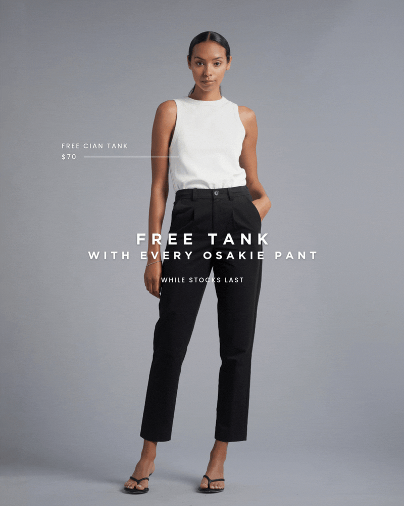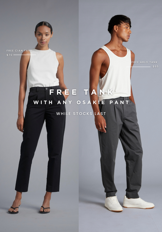 For a limited time, each Osakie purchase comes with a complimentary tank (worth up to $70). Choose your size, select your tank, and build a summer uniform you’ll wear on repeat