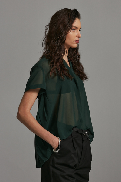 Dark Green Juno Pleated Shirt