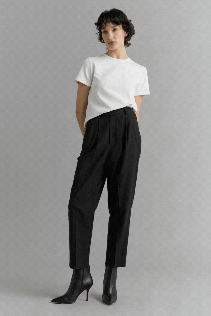 Made from a luxurious blend of Tencel and cotton, the Bowie Pants provide both structure and drape, creating an effortlessly cool look. Details like the double tuck along the waist seam, tapered ankle, and pressed leg crease bring an elevated edge to any wardrobe.
